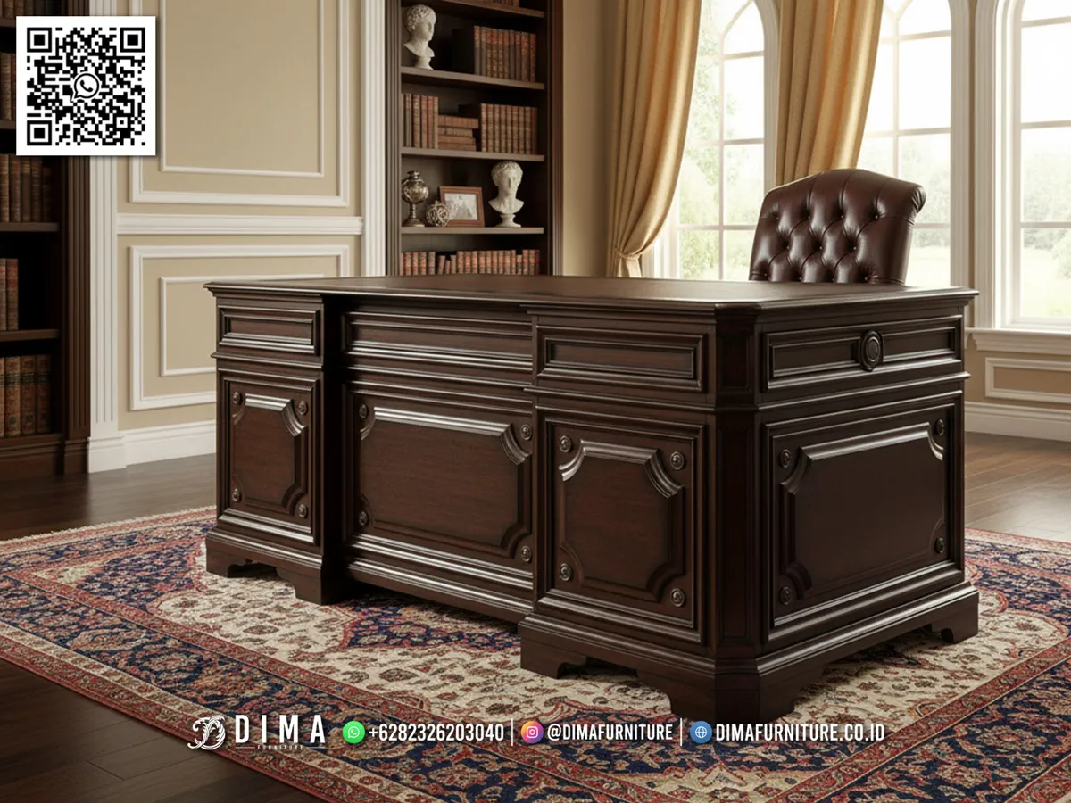 Kalau kamu sedang cari meja kantor klasik yang tampil berwibawa dan tahan lama, Dima Grandwood bisa jadi pilihan tepat. Meja ini hadir dengan desain elegan bergaya klasik Eropa yang terbuat dari kayu solid pilihan, memberikan kesan eksklusif di setiap sudut ruang kerja.