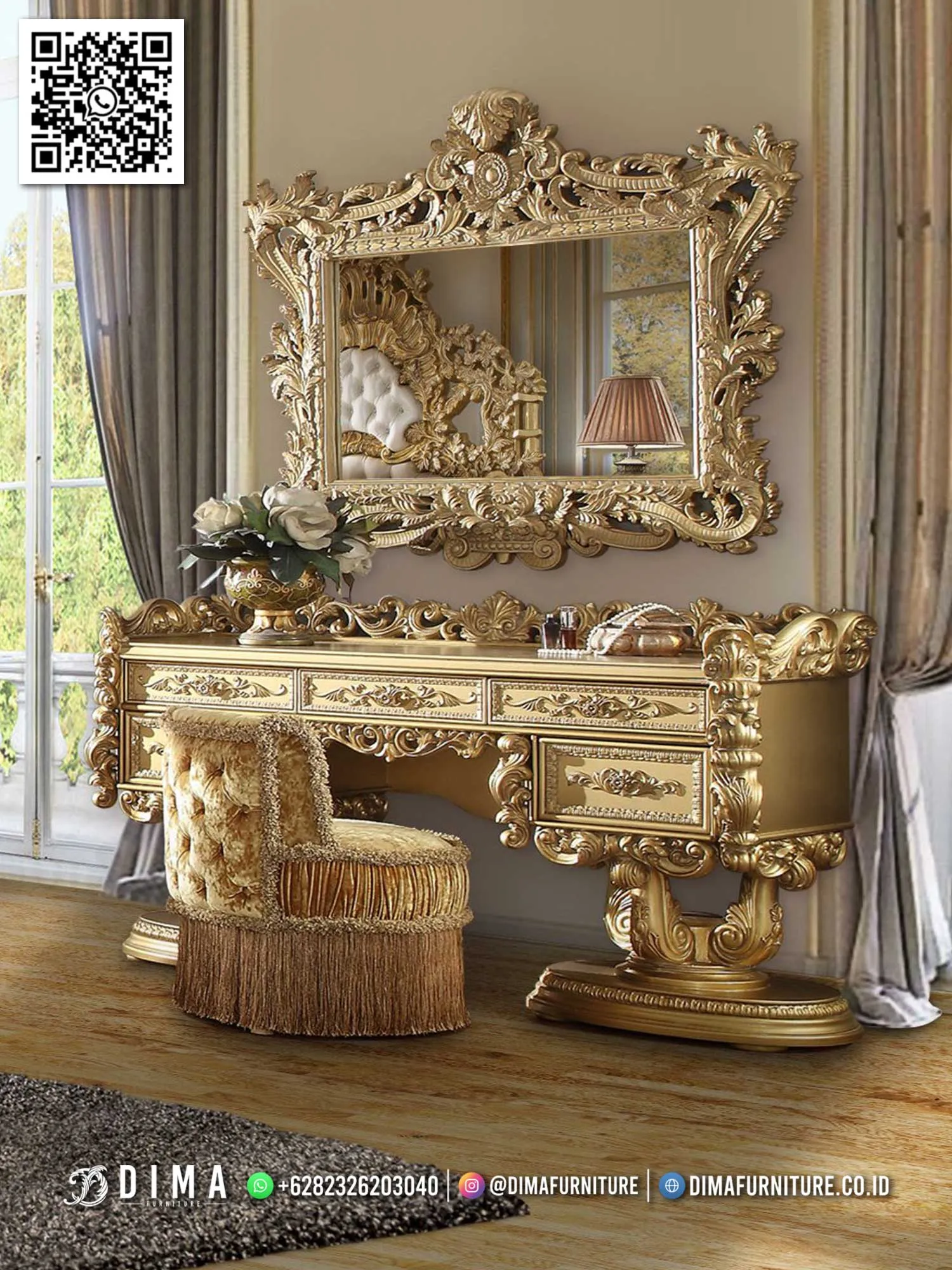 Bagi anda yang menyukai tampilan elegan dan penuh kemewahan, meja rias ukir emas clarissia klasik mewah jepara bisa menjadi pilihan sempurna untuk mempercantik ruang kamar anda.